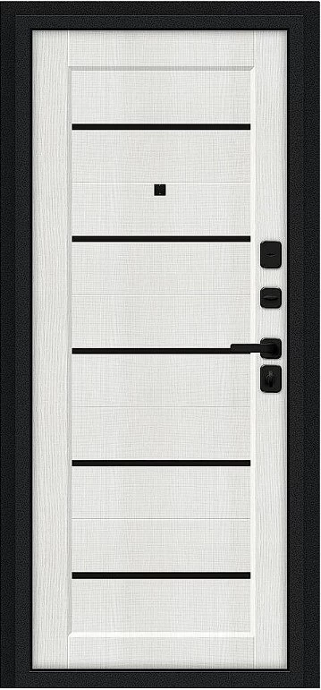 Надежная входная Дверь Браво Борн/SBlack Букле черное/Bianco Melinga премиум класса по цене 33 383 руб. Большая толщина стали защитит от проникновения в ваш дом, квартиру или коттедж. Используется очень качественная фурнитура: замки, цилиндры, ручки, защелки. Покрытие и отделка двери изготовлено под внимательным контролем производителя. Дверь имеет долгий срок службы и гарантию.