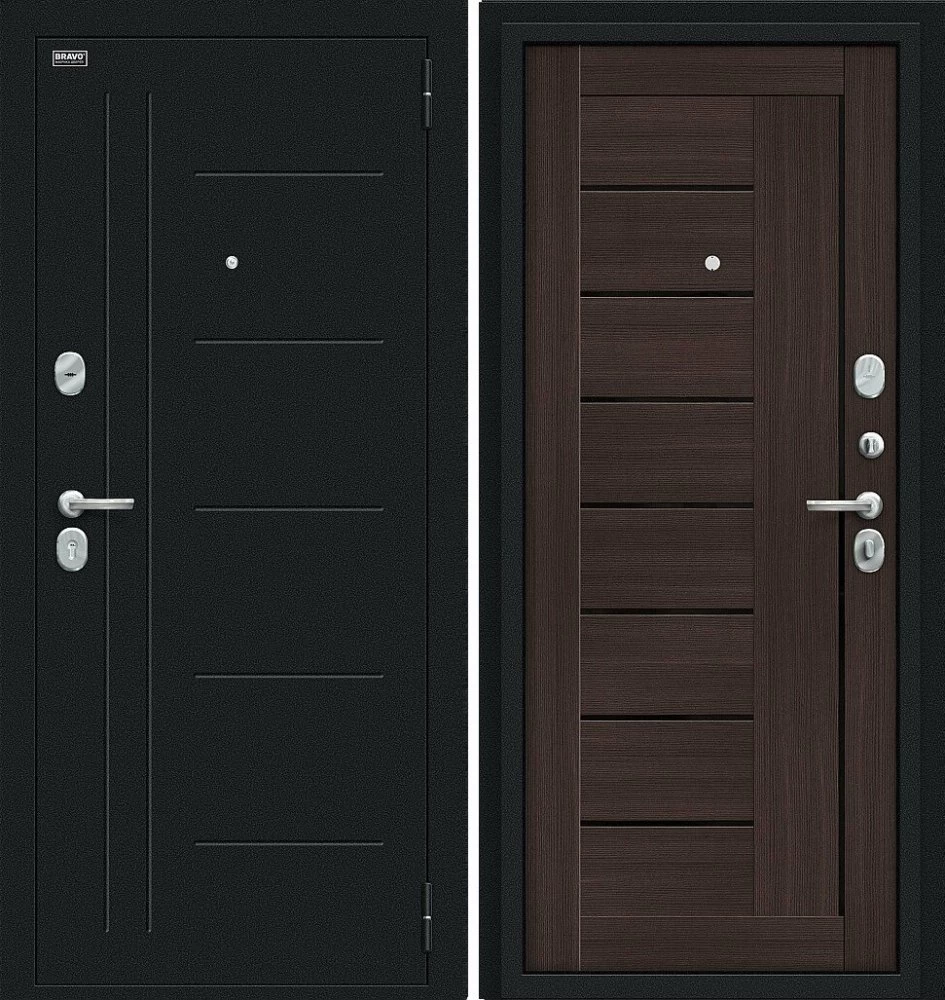 Надежная входная Дверь Браво Проф Букле черное/Wenge Veralinga премиум класса по цене 32 883 руб. Большая толщина стали защитит от проникновения в ваш дом, квартиру или коттедж. Используется очень качественная фурнитура: замки, цилиндры, ручки, защелки. Покрытие и отделка двери изготовлено под внимательным контролем производителя. Дверь имеет долгий срок службы и гарантию.
