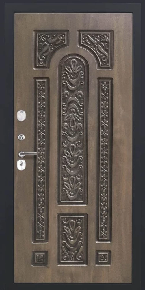 Дизайнерская входная Входная дверь ДвериПРО L Термо Д-19 (16мм, Грецкий орех + черная патина винорит) DPRO194058 класса Люкс с несколькими листами стали, звукоизоляцией и теплоизоляцией. Утепленный короб и полотно защитят от сквозняков и шумов. Модель не только надежная, комфортная, защищенная и высочайшего качества, но и очень красивая! Будет отлично сочетаться с интерьером дома, квартиры или офиса. Сейчас действует выгодное предложение по цене: 76 761 руб.