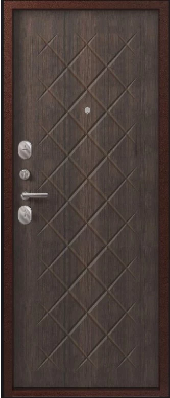 Надежная входная Дверь V-02 медь антик - венге премиум класса по цене 36 633 руб. Большая толщина стали защитит от проникновения в ваш дом, квартиру или коттедж. Используется очень качественная фурнитура: замки, цилиндры, ручки, защелки. Покрытие и отделка двери изготовлено под внимательным контролем производителя. Дверь имеет долгий срок службы и гарантию.